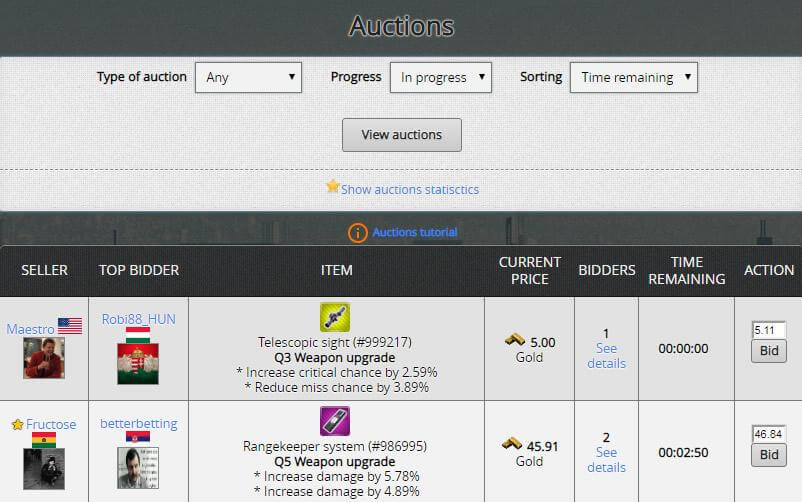 At the auction you can sell or buy your dream inventory.