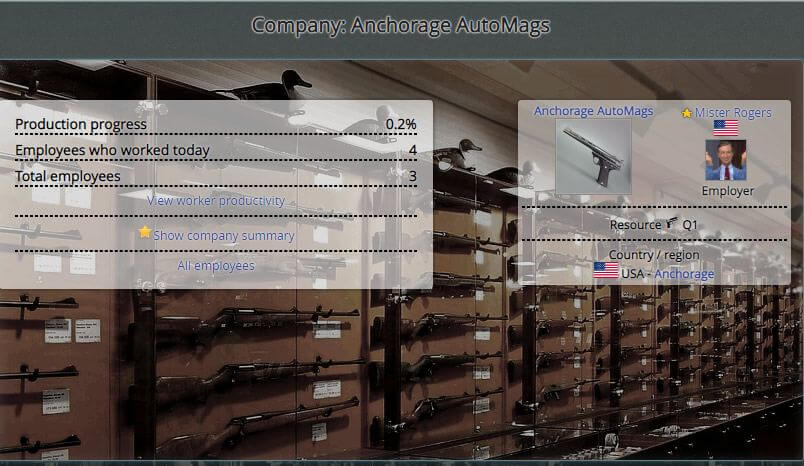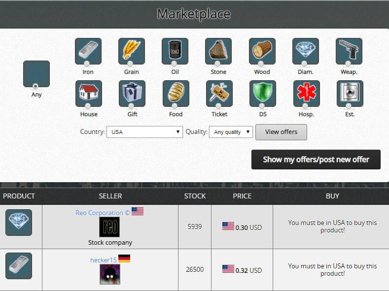 Activities in this game are divided into several modules. First is the economy as a citizen in a country of your choice you must work to earn money, which you will get to spend for example, on food or purchase of weapons which are critical for your progress as a fighter. You will work in either private companies which are owned by players or government companies which are owned by the state. After progressing in the game you will finally get the opportunity to set up your own business and hire other players. If it prospers, we can even change it into a joint-stock company and enter the stock market and get even more money in this way.